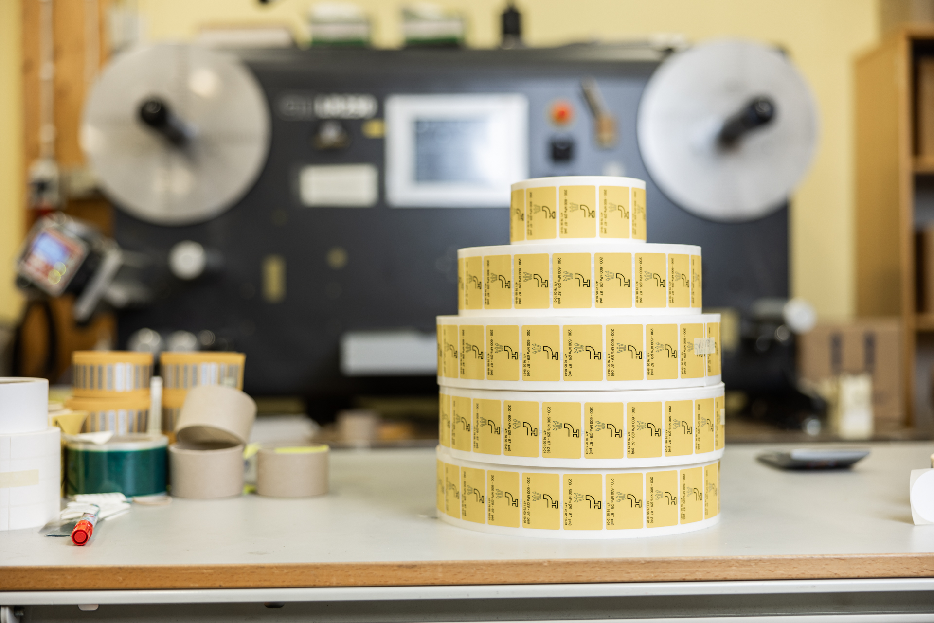 Vi erbjuder ett brett spektrum av tekniska material som PP, PE, PET, papper, termomaterial och specialkompositer. Valet styrs av krav på kemikalieresistens, flexibilitet, rivstyrka, fukttålighet och temperaturbeständighet. Häftämnen kan anpassas för olika ytor såsom glas, plast, kartong, metall och flexibla förpackningar – från permanenta akryllim till avtagbara lösningar eller lim optimerade för lågenergiytor. Ytbehandlingar som laminat, lacker, metalliseringar och skyddsbeläggningar säkerställer längre hållbarhet och bibehållen läsbarhet även i krävande miljöer.